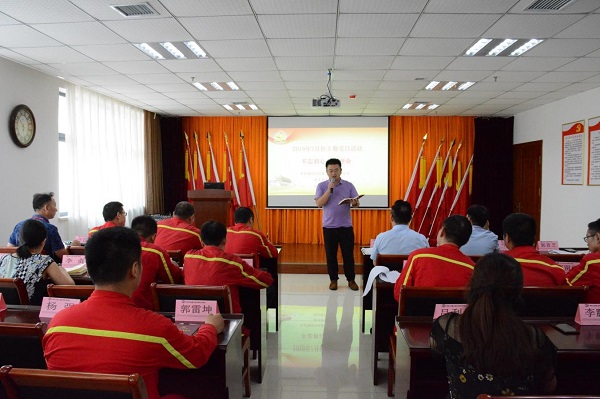 2019年7月25日下午,郑州万达重工股份有限公司党总支在综合行政楼二楼党员活动室开展了2019年7月份“不忘初心、牢记使命”主题党日活动。党总支全体党员、入党积极分子、入党申请人共计40余人参加了此次活动。活动由党总支副书记于江山主持。