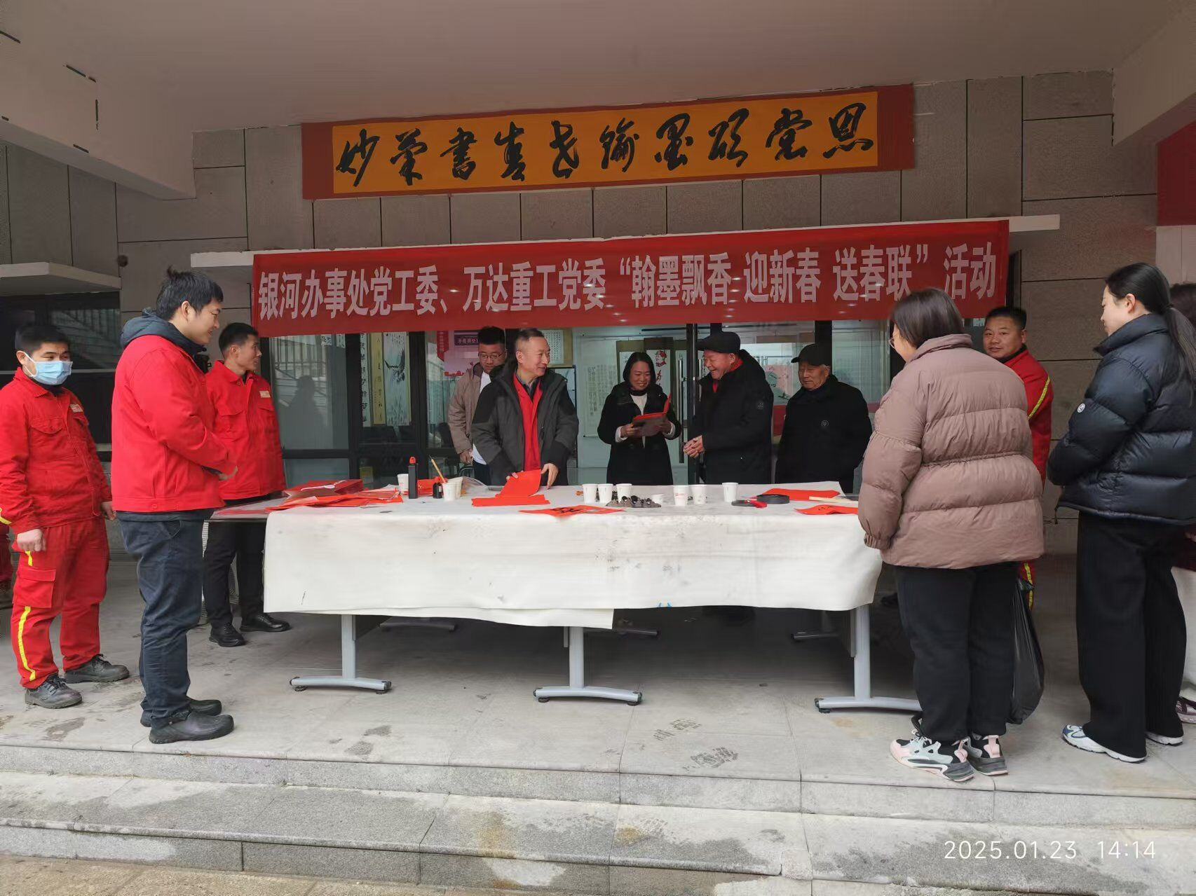 2025年1月23日下午13:30--15:00,万达重工党支部第二党小组代表万达重工党委,联合银河办事处党工委在裕祥社区文化广场联合举办了“翰墨飘香迎新春、送春联”活动。