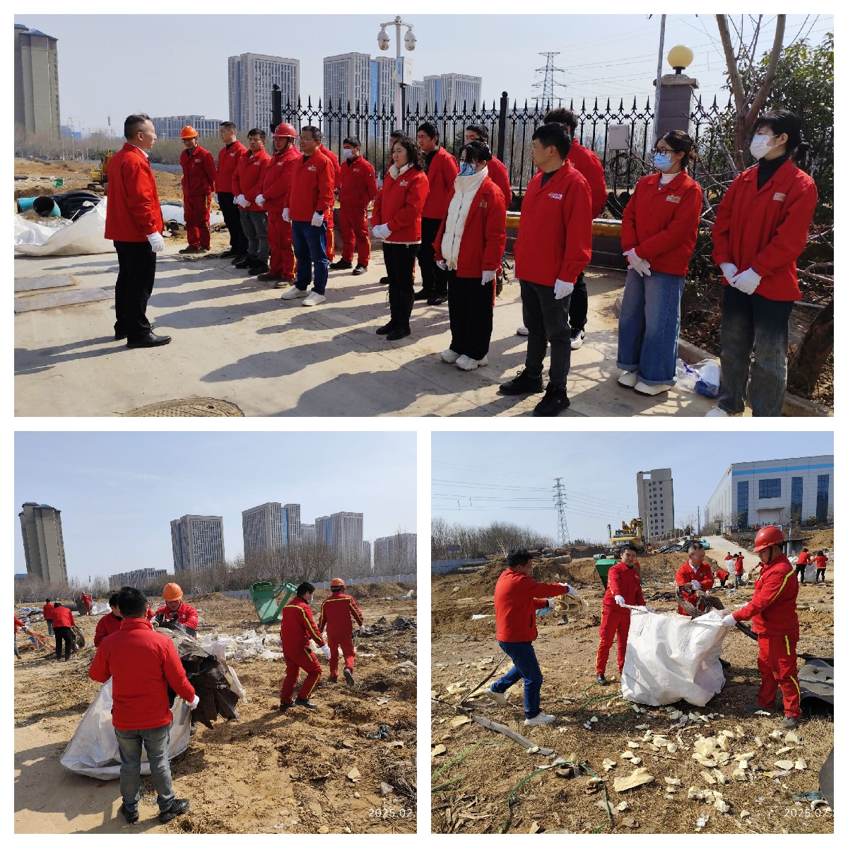 万达重工党支部活动情况:2月25日(周二)中午12:40,万达重工党支部第一、二、三党小组联合组织进行了“三期项目用地清表”活动,活动内容是对三期项目用地表面棉毡、袋子等物品进行分类收集整理。