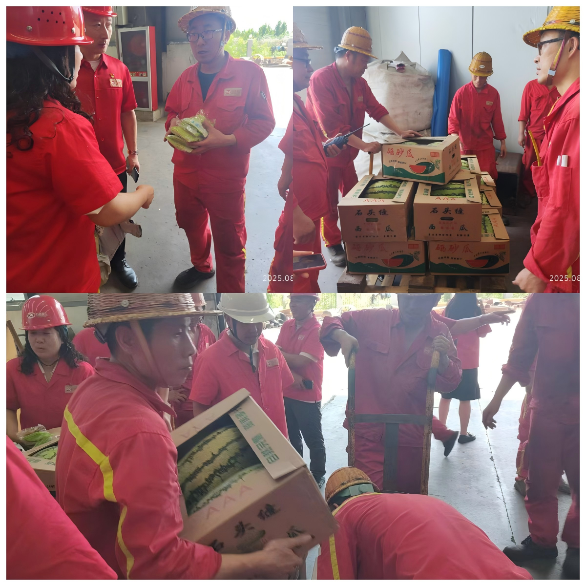 万达重工党支部活动情况:8月21日中午,万达重工党支部所属第一、第二、第三党小组联合开展“送清凉·助生产”活动,党员们将甘甜西瓜和消暑物品送至一线车间作业区。