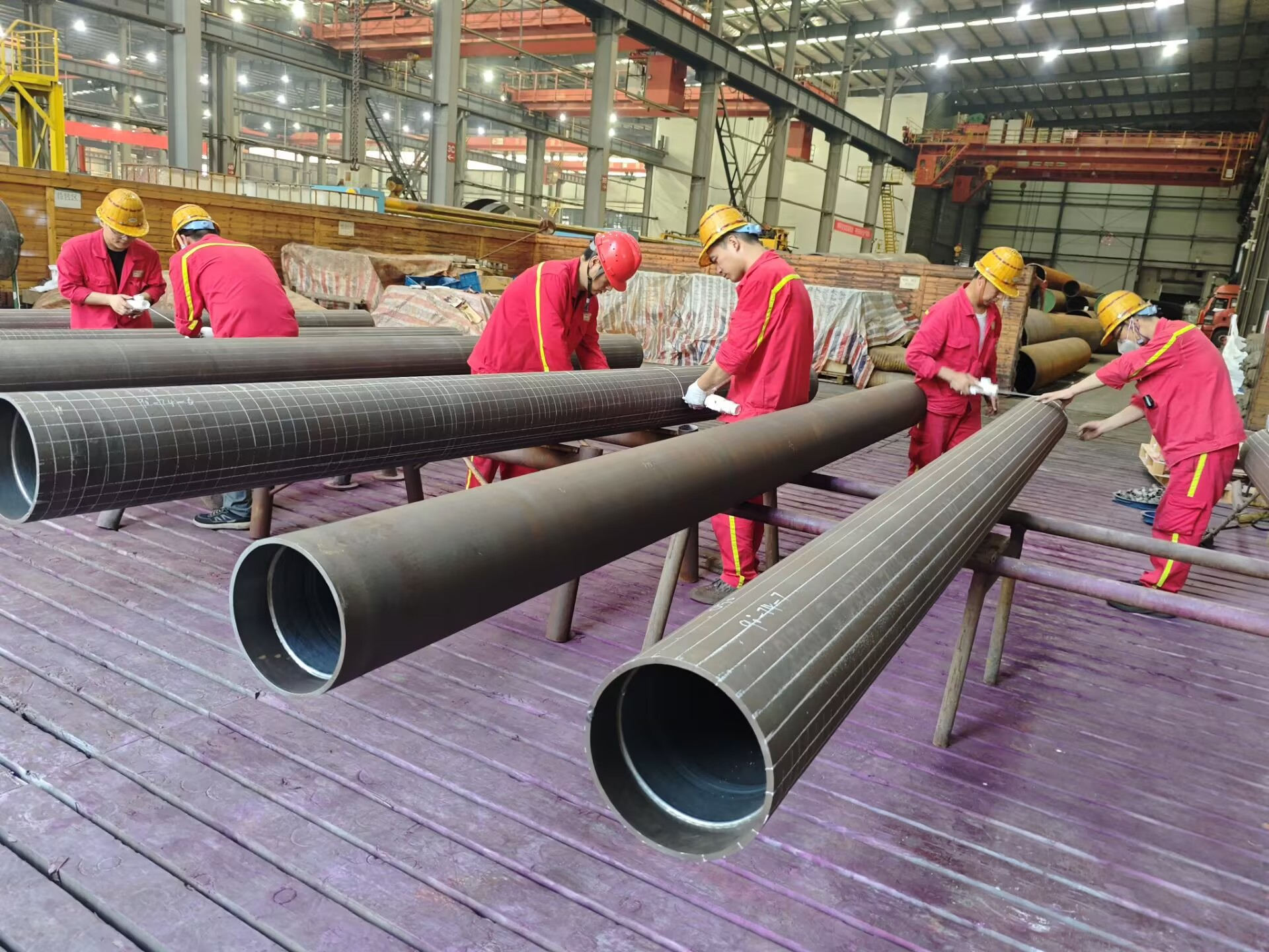 万达重工子公司dan党支部活动情况:一、8月13日晚上18:30至20:00,第四党小组开展了“助力生产”活动。活动中,党小组成员协助堆焊事业部生产人员,对里木油田牙哈储气库项目的8根管道进行划线工作。