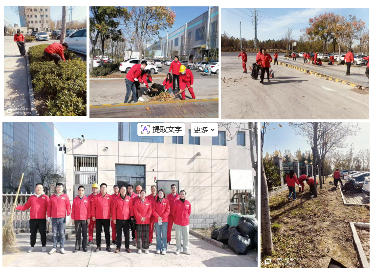 万达重工子公司党支部活动情况:11月26日中午,第四、第五党小组利用午休时间联合组织了园区外停车场清洁活动,对西南门停车场堆积的落叶与杂物进行了集中清理。