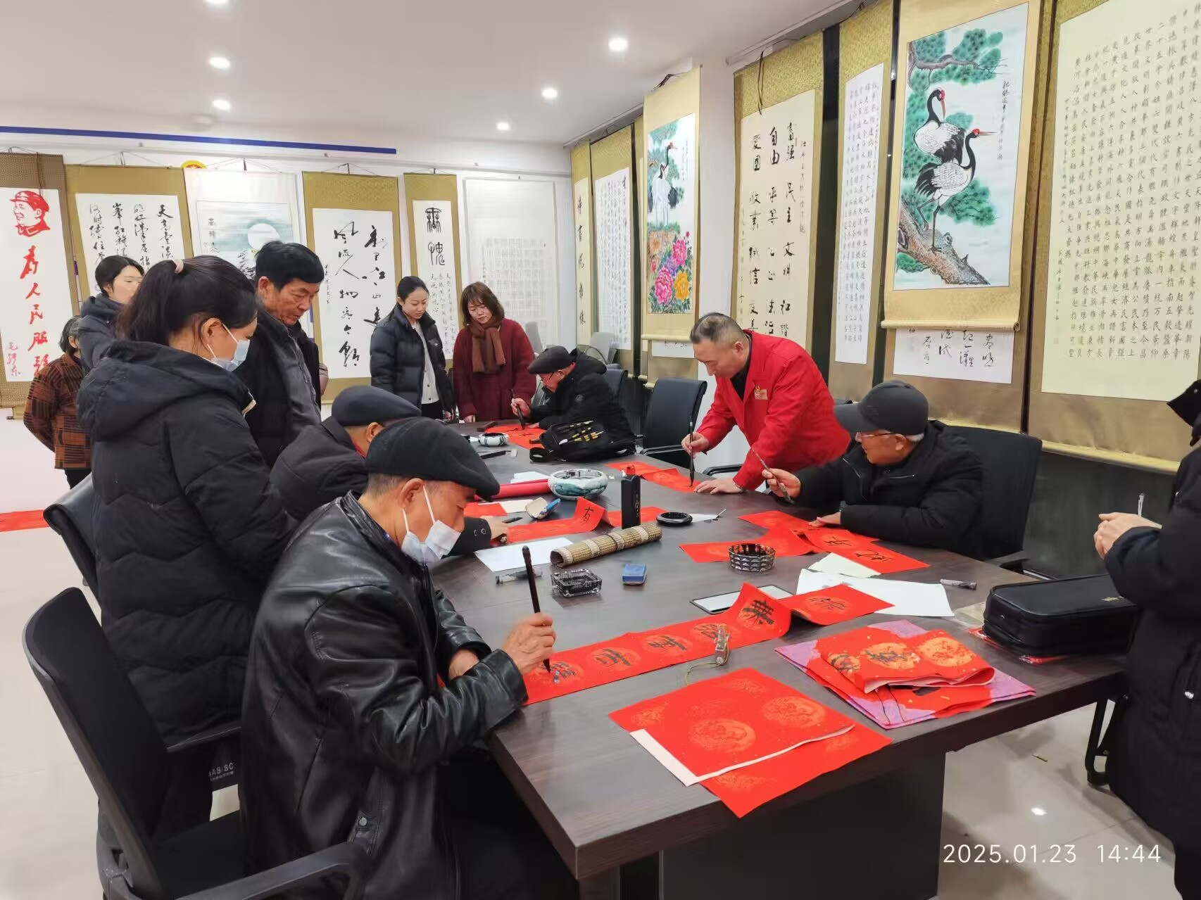 2025年1月23日下午13:30--15:00,万达重工党支部第二党小组代表万达重工党委,联合银河办事处党工委在裕祥社区文化广场联合举办了“翰墨飘香迎新春、送春联”活动。