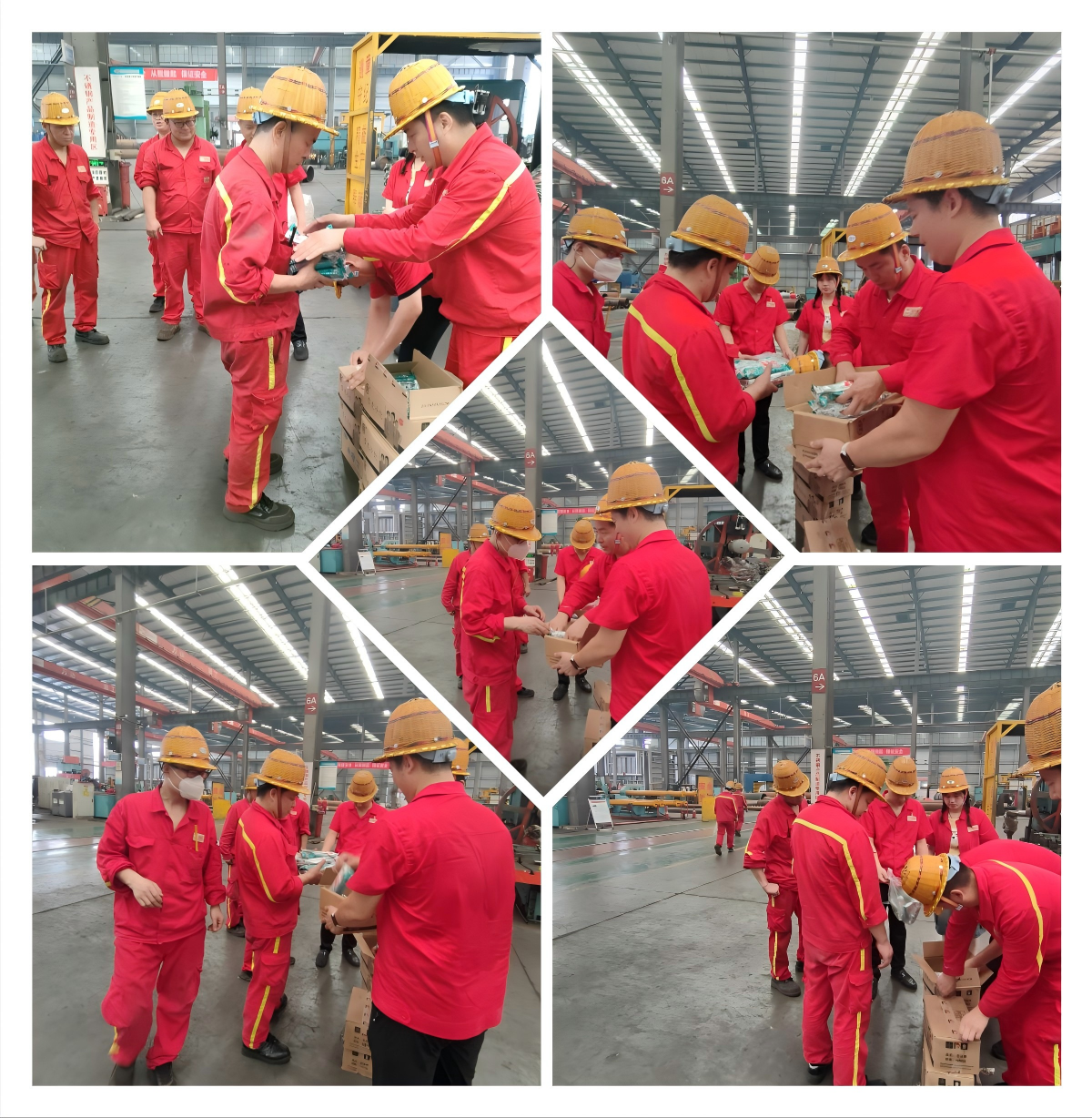 万达重工子公司党支部活动情况:7月15日下午,第四、第五党小组开展“送清凉”活动,购买西瓜对生产一线员工进行关怀。